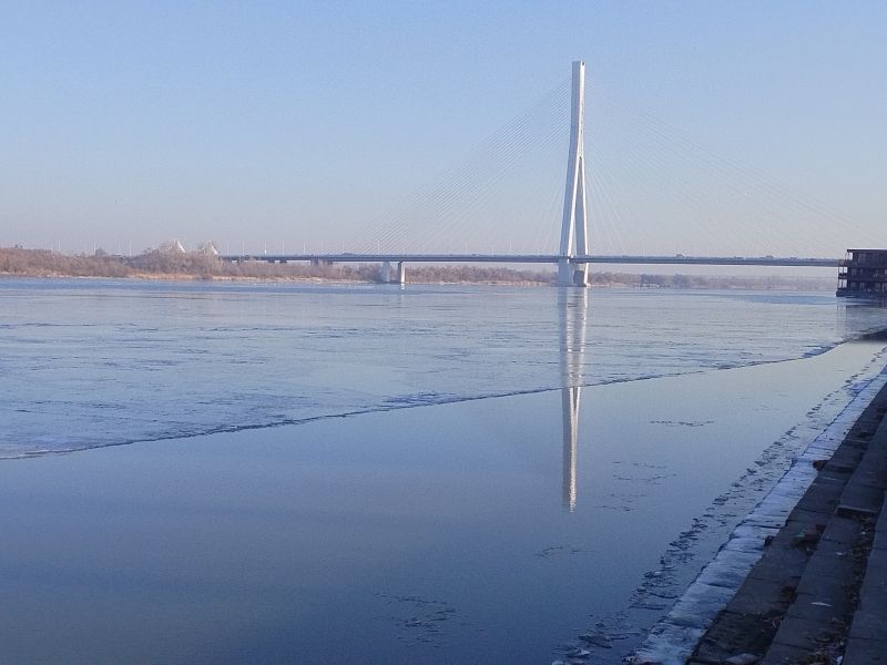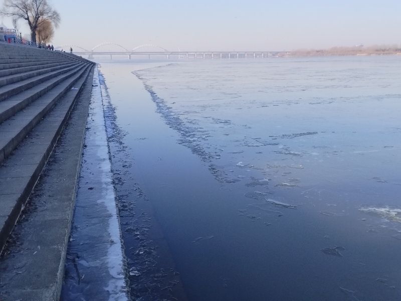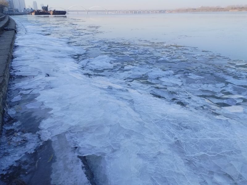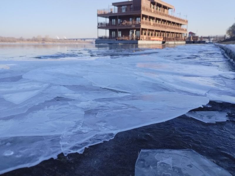 2022年11月22日,哈尔滨,松花江哈尔滨市区段开始流冰。