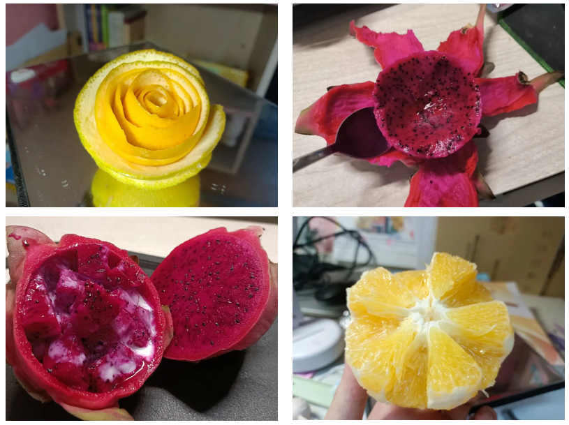 也有同学将水果吃出了“艺术感”~