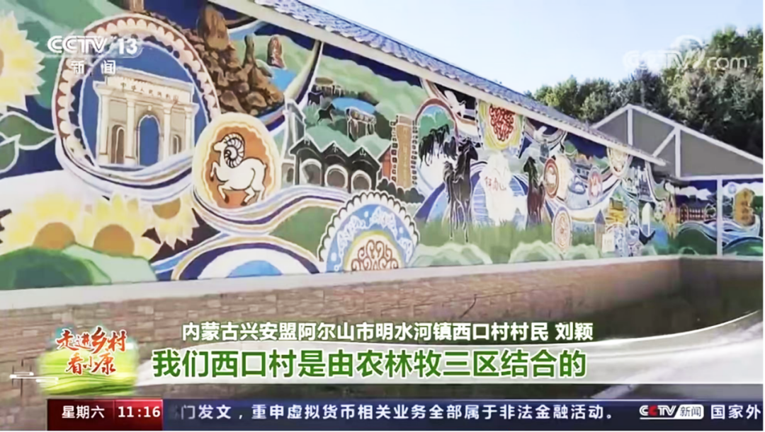 幸而,艰辛有多少,收获就有多少,团队充分发挥“自强不息”的精神,用了最短的时间高质量完成《印象阿尔山》《印象草原》等作品。墙绘中,当地蒙古族的文字、图案等传统元素结合了阿尔山机场、火车站等新时代元素,完美展现了当代阿尔山独特的韵味。CCTV13的“走进乡村看小康”节目也对这面墙进行了报道,前来视察的阿尔山市委书记赞叹道,“足不出村,即可领略阿尔山的旖旎风光。”