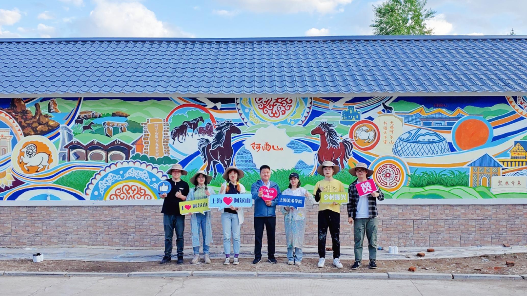 2021年6月,“阿尔山乡村墙绘艺术大赛”开展,上海大学上海美术学院6名师生来到阿尔山,负责村里民俗墙面的设计,王斌便是其中之一。刚走进阿尔山西口村,险峻的山路便让王斌感到了震撼。除了崎岖的山路,技术、气候与时间的困难也如约而至。