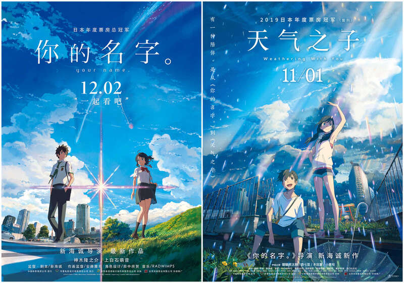 《你的名字。》(2016)和《天气之子》(2019)海报