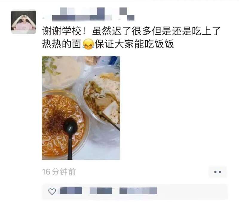 “虽然迟了但是还是吃上了热热的面”