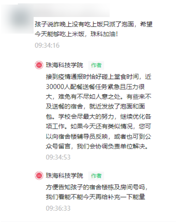 学校为暂时来不及送餐的宿舍