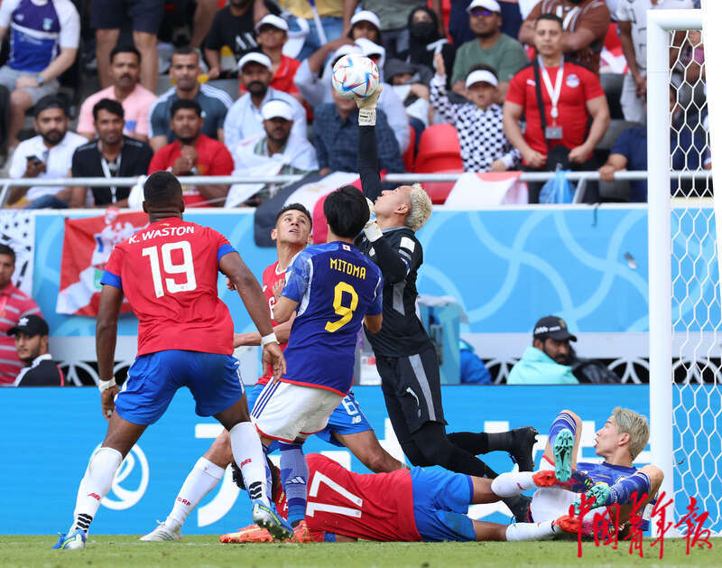 11月27日,在卡塔尔赖扬艾哈迈德·本·阿里体育场进行的2022卡塔尔世界杯足球赛E组比赛中,哥斯达黎加门前险情。刘占崑/摄