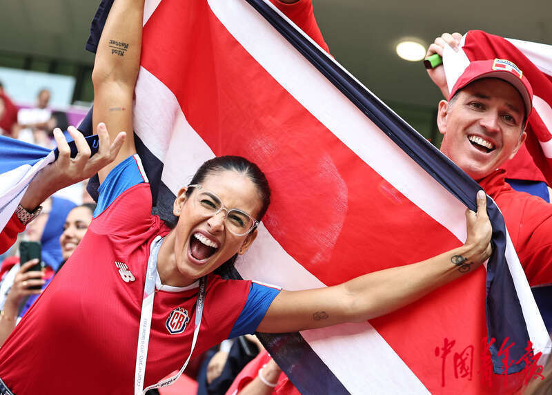 11月27日,在卡塔尔赖扬艾哈迈德·本·阿里体育场进行的2022卡塔尔世界杯足球赛E组比赛结束后,哥斯达黎加获胜后球迷开心不已。刘占崑/摄