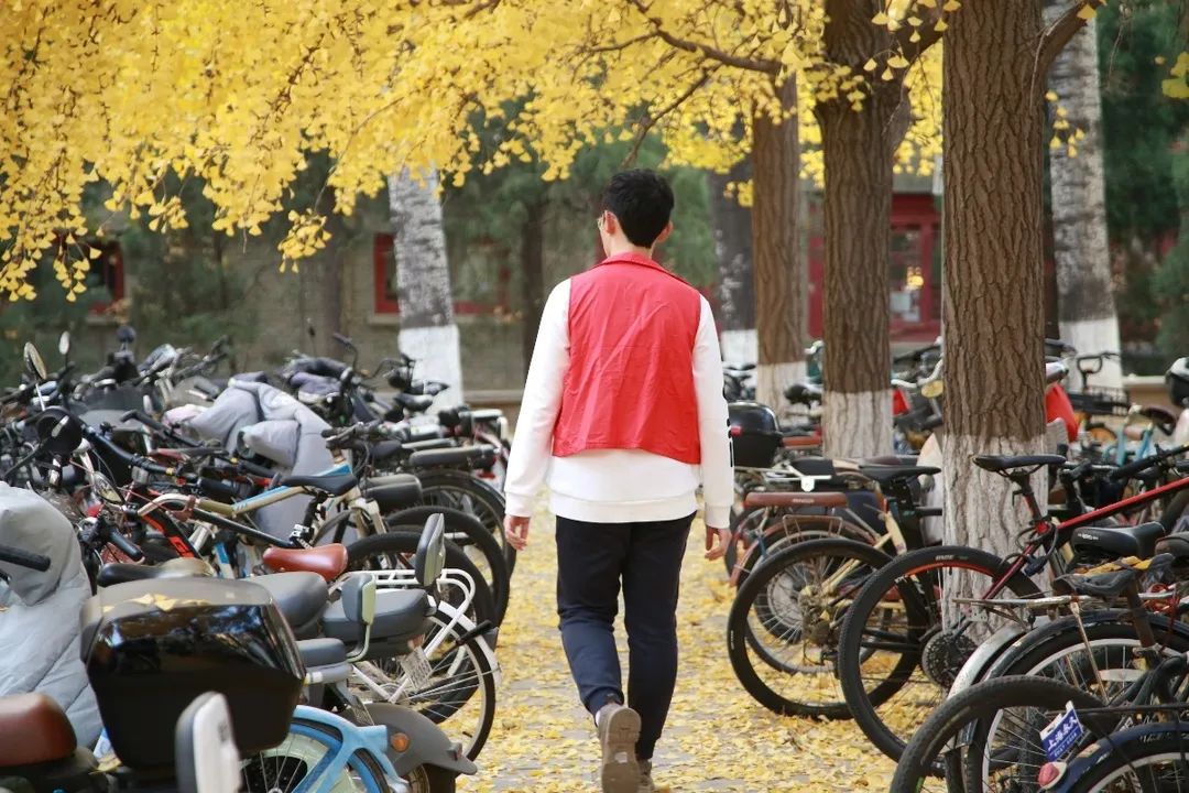服务期间,无论是骄阳似火,还是阴雨绵绵,唐诗隽都会准时来到图书馆南门,穿上红马甲在室外开始自己的工作。“简言之,‘南门辅助’就是在南门帮忙看门。”他笑言道。但这份工作说来轻巧,做起来却并非易事,甚至算得上是个“体力活”。由于南门附近是图书馆主要的自行车停放区,唐诗隽要格外关注自行车的停放秩序。一旦遇到有车主违规停放,他不仅要耐心劝导,有时还需要帮忙把沉重的车挪进停车区。