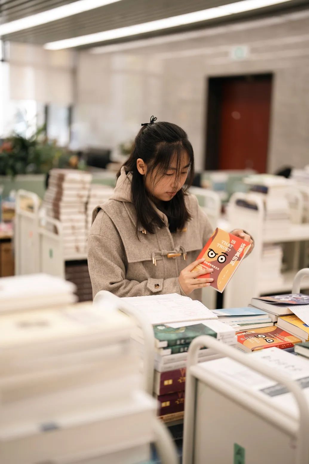 这次服务经历,还让韦润芃和另一位志愿者同学因书结缘,成为了好朋友。她们不仅能默契配合,高效完成工作,还发现彼此在读书方面有着相同的喜好:“我们专业背景相似,同时还能发现新奇的角度和好笑的点子。”《见字如乐——中国诗乐古谱释译》《故宫的声音》《发明人类:平等与文化差异的全球观念史》……二人整理新书,谈书论书,在短短两小时里收获了十足的快乐。