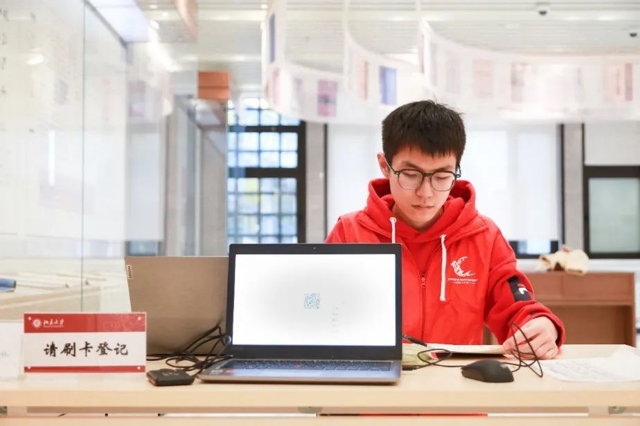 “图书馆的工作量和日常工作是比较琐碎的,任务也是比较繁重的,常设的志愿者和临时志愿者种类也比较丰富,每次都能够体验到不同的内容。”今年,博士三年级的王子正已经成为了图书馆的骨干志愿者。目前,他主要在图书馆东楼新馆的北侧展厅,负责协助前来参观展览的师生进行签到,为他们答疑解惑。