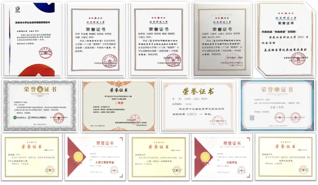 也正是这第一次参赛的经历打开了她的竞赛大门。大三学年,出于对生物领域浓厚的兴趣,她再次组队进行“基于3D打印微针的个性化智能纹身用于血糖可视化实时监测”生物项目的研究,通过与专业老师和研究生梯队学长学姐交流学习,打破专业的限制,她学会了利用AI等软件绘图以及3D打印技术的知识,该项目最终获得北京科技大学第二十三届“摇篮杯”大学生创新创业竞赛创意竞赛特等奖、北京科技大学第二十三届“摇篮杯”大学生创新创业竞赛科技竞赛二等奖。