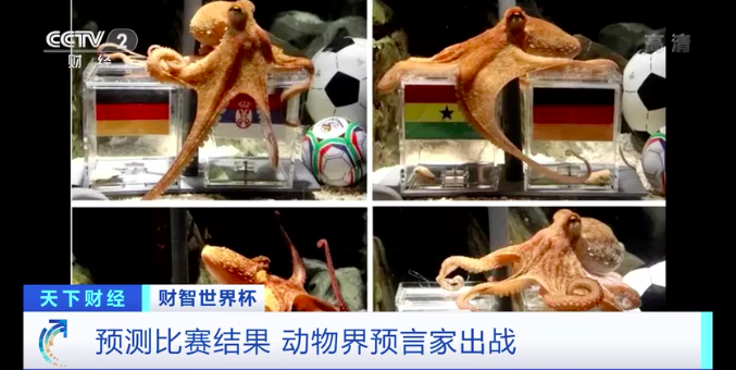 预测足球比赛,是每届世界杯不可或缺的娱乐方式之一。此前,一只饲养在德国奥博豪森水族馆中的章鱼,一夜成名,并在2010南非世界杯历史上留下了不可抹去的一笔。南非世界杯期间,“章鱼保罗”准确预测了八场比赛的胜负结果。