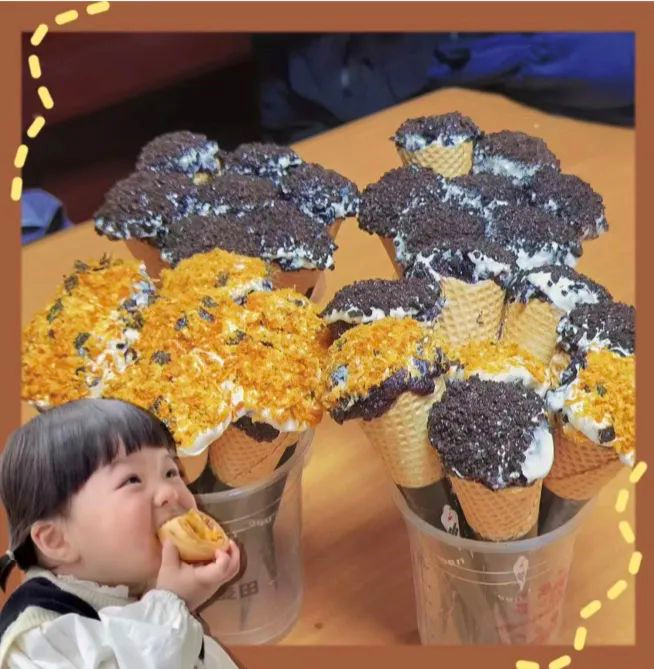 它的外形和冰淇淋很像,又冒着热气,因此有“热冰淇淋”之称。脆筒、黑糯米和奶油,这几个食物加在一起就格外适合天气渐凉的秋冬。“热乎乎”的热奶宝,弥补了大家在寒冷的冬天无法吃冰淇淋的遗憾。