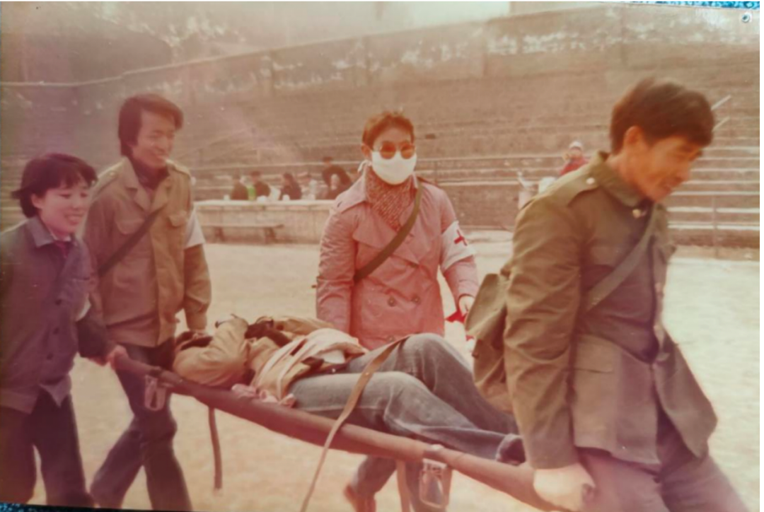 以上两张为上世纪90年代中期,校医院组织急救培训,左二、担架后排分别为校医生