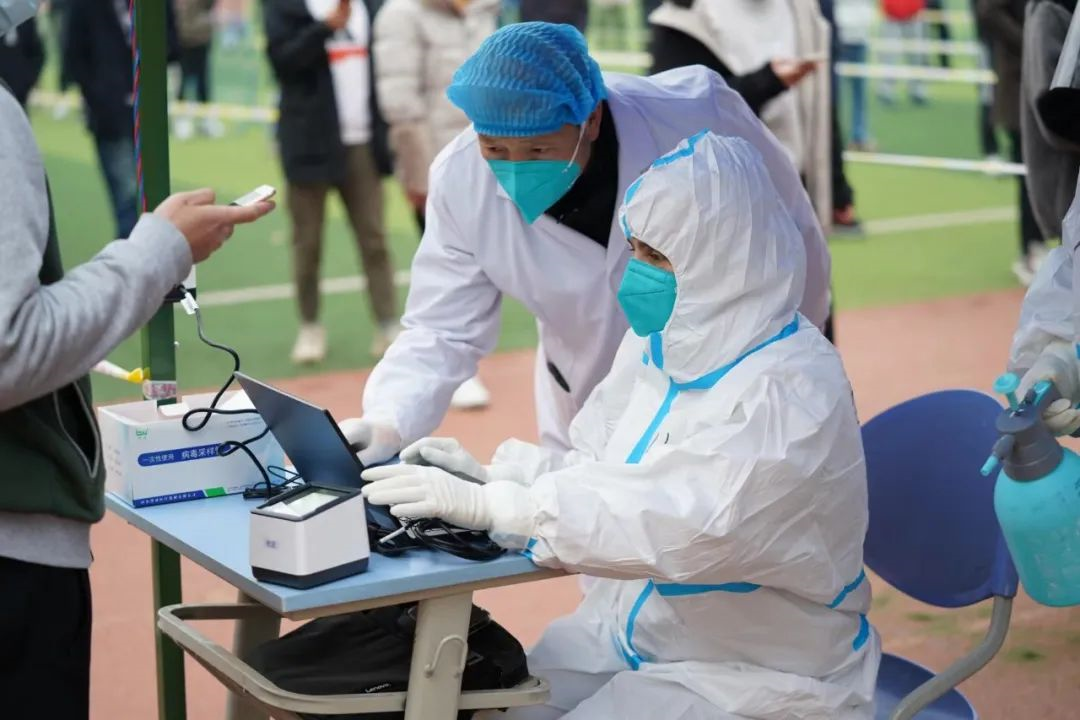 核酸检测现场,校医生帮助志愿者检查登记系统
