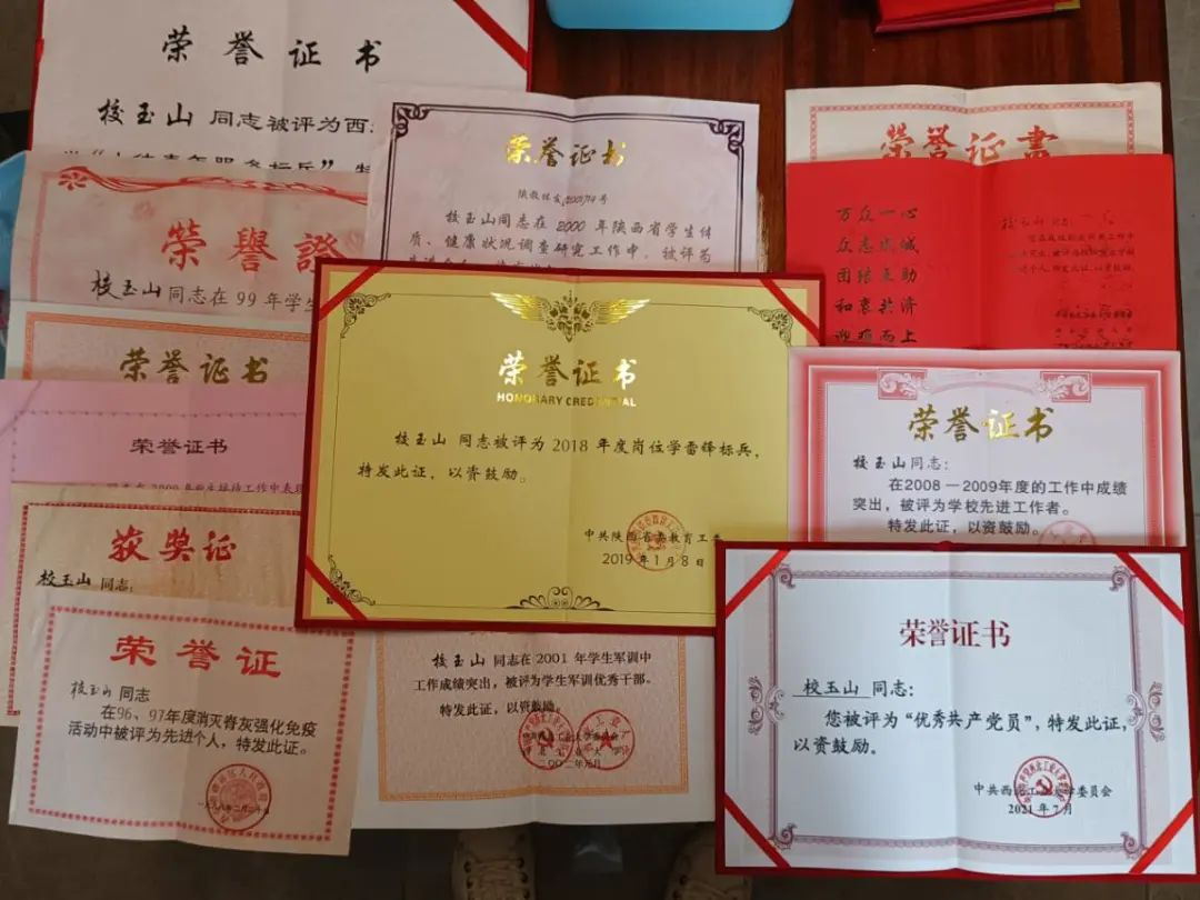 20世纪80年代以来,校玉山医生先后获西安市卫生局颁发的“先进工作者”(1991)、西安市碑林区人民政府颁发的“先进个人”(1998)、中共陕西省委教育工委颁发的2018年度岗位学雷锋标兵(2019)、西北工业大学“先进工作者”(1989)、西北工业大学“三育人”先进个人(二等奖)(2001)、西北工业大学“十佳青年服务标兵”(2006)、西北工业大学“2008-2009年度学校先进工作者”(2009)、西北工业大学“优秀共产党员”(2021)等荣誉称号。