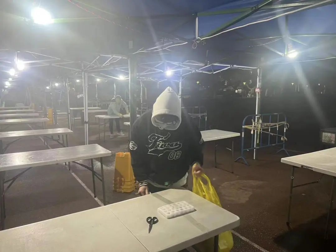 清晨6点20分,口腔科主任刘建平带着科室成员在核酸采样现场布置场地