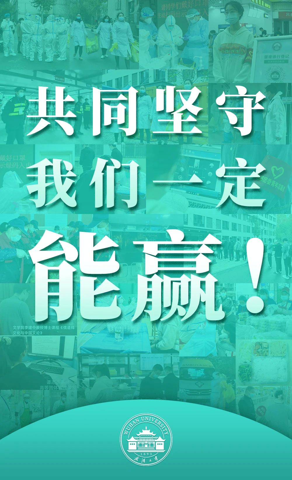 突来的疫情让人猝不及防,然而,学校以快制快,学生积极配合,让我们吃下了一颗定心丸。物资准备供应充足,全员核酸再接再厉,线上教学有条不紊……凝心聚力,共克时艰,每一位武大人都在付出和努力!没有一个冬天不可逾越,没有一个春天不会来临。相信武大,让我们共同战胜疫情!