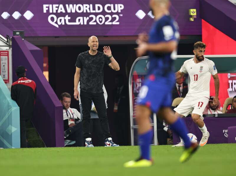 11月29日,在卡塔尔世界杯B组最后一轮小组赛中,美国男足主教练格雷格·伯尔哈特在场边指挥。他在赛前发布会上表示,美国队没能参加上届世界杯,这次他们将用一场胜利来争取小组出线,证明美国队这四年来的努力没有白费。刘占崑/摄