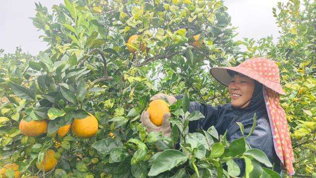 群峰连绵,飞泉流泻,在广西防城港市上思县境内的十万大山国家森林公园,群山上树木在冬季依旧郁郁葱葱。在森林公园外东北部的低山丘陵地带,上思县公正乡信良村元成柑橘种植专业合作社的510亩纽荷尔脐橙迎来丰收,金黄色的脐橙挂满枝头,吸引众多采购商前来购买。
