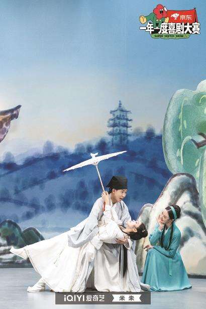 图为《一年一度喜剧大赛2》中,“小婉管乐”组合的作品《千年就一回》剧照