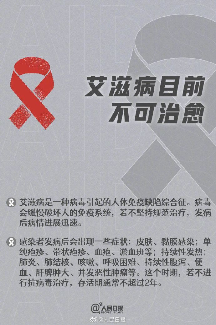 ①据中国疾控艾防中心数据显示,每年新报告3000多例青年学生病例;②艾滋病目前不可治愈,但可积极预防和控制;③艾滋病黄金阻断期是接触病毒2小时内;④故意传播艾滋病,将受到法律制裁。今天,第35个“世界艾滋病日”。了解预防,消除歧视↓、