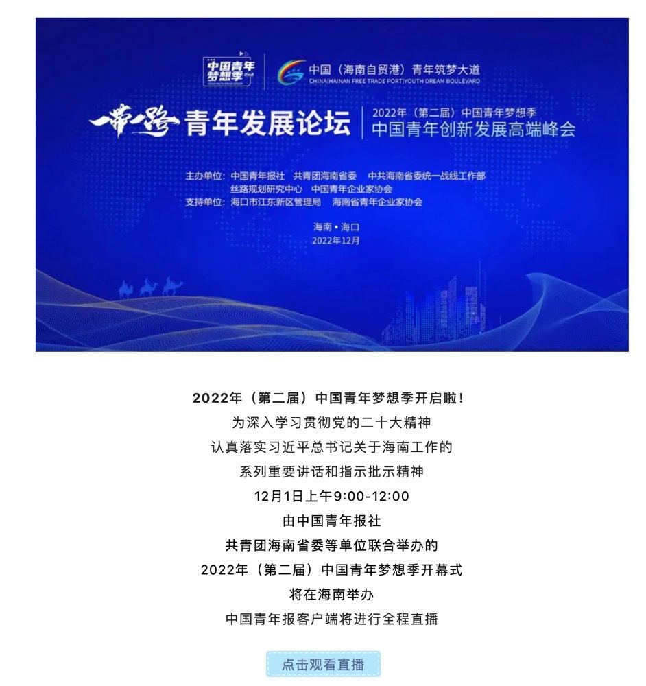 直播预告!2022年(第二届)中国青年梦想季来啦!