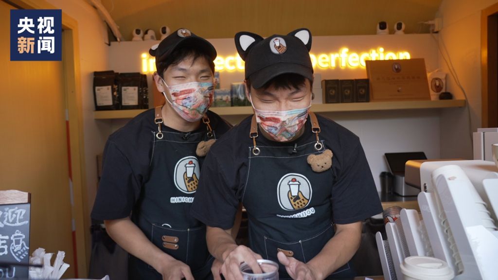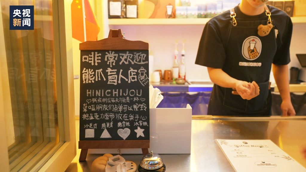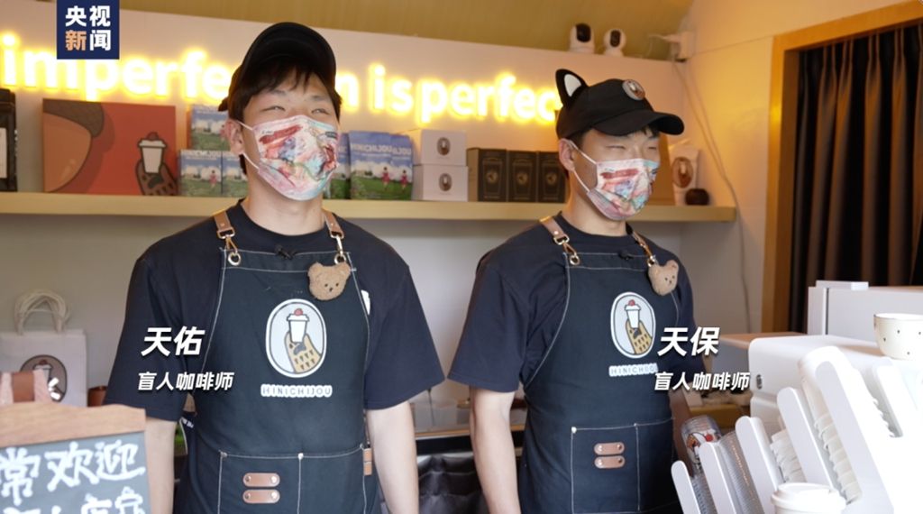 “咖啡店有一套盲人定位系统,还有为我们定制的全自动咖啡机和奶泡机。”弟弟天佑游刃有余地向总台记者介绍着操作细节。