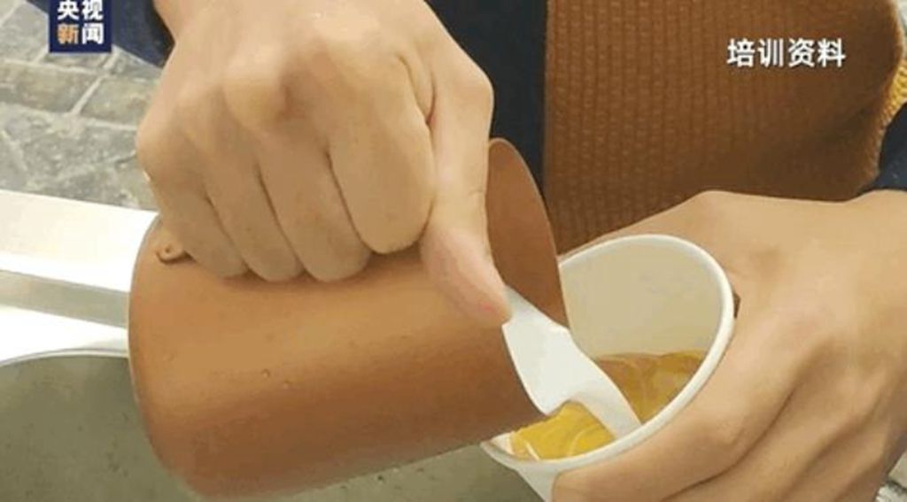 2021年11月起,哥哥天保开始跟着店里的培训师学做咖啡。由于无法直观看到杯子的大小和水量,有时候水加多了就会溢出杯子;做拉花图案,会对不准杯口,导致牛奶倒在了手上……