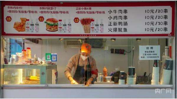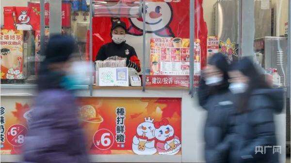 等待顾客上门的餐饮店店员(央广网记者 贾海元 摄)