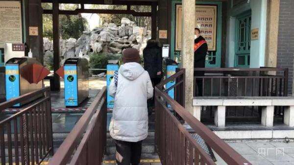 趵突泉公园门口,工作人员不再查验健康码和核酸证明,市民检票后可直接入园(央广网记者刘博伦摄)