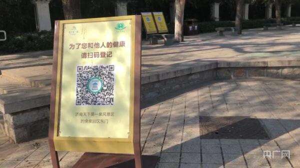 趵突泉公园检票处前的场所码已没有游客来扫描(央广网记者刘博伦 摄)