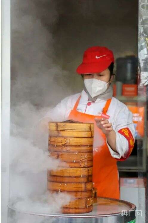 一名店员正在餐饮店忙碌(央广网记者 贾海元 摄)
