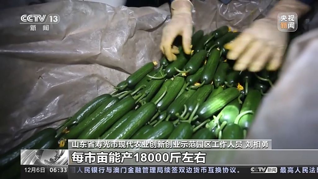 山东省寿光市现代农业创新创业示范园区工作人员 刘相勇:像我这个棚每天摘六七百斤,每市亩能产18000斤左右。