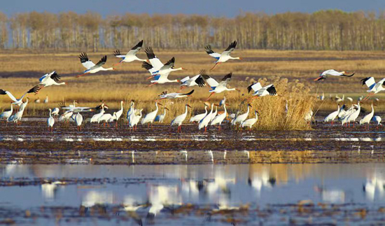 东方白鹳和白鹤都是国家一级保护野生动物。比起白鹤,在镇赉见到东方白鹳就更加令人激动,“因为野生东方白鹳在全世界只有1万只左右,今年一下子见到2000多只,有点不敢相信自己的眼睛。国家一级保护野生动物频繁出现,这对我们来说是一个鼓舞。”潘晟昱兴奋地说。