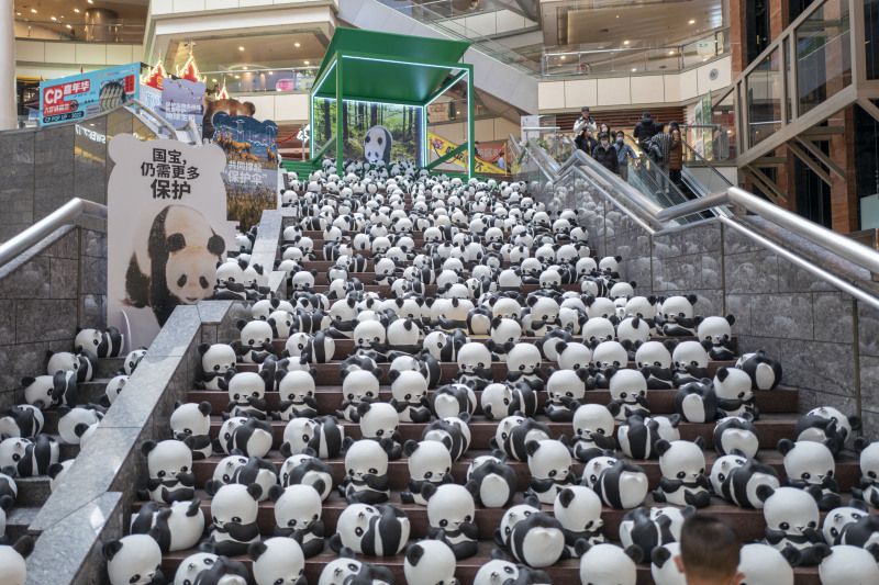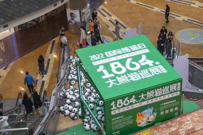 2022年12月5日,“1864大熊猫巡展上海站”现场的大熊猫纸雕。“1864大熊猫巡展上海站”于2022年12月4日-12月14日在正大广场举办,500余只纸雕大熊猫现身。