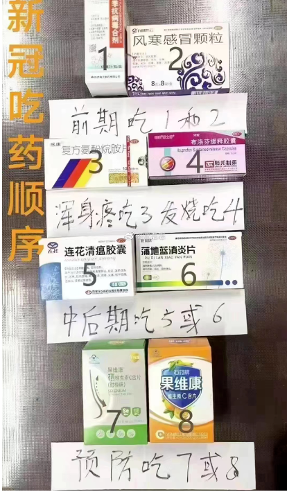 广州中医药大学第三附属医院急诊科主治中医师曾远峰表示,目前,感染新冠病毒的患者会有十大症状中的一个或者几个,治疗没有一个绝对、完整的吃药顺序。图片里列有七八种药,包含西药、中成药,每种药有不同的功效,且不同药有不同功效,我们 需根据各自功效来服用,而不是按顺序来服用。