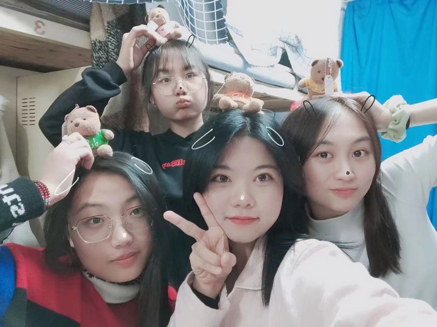 328寝室里,四位女孩儿各有各自的特色。刘欣妮同学作为328寝室的寝室长,是四位女孩儿的“小太阳”,温暖着女孩们的日常生活;张一涵同学是寝室里的“工作达人”,忙碌是她的常态;朴舒芃同学是寝室里“可爱的小妹妹”,一米七多的高个子却有一颗温柔可爱的心,声音甜甜的,笑容暖暖的;侯灵杰同学是大家学习和社会工作上的“小百科”,被女孩们亲切地称为“侯哥”,为寝室劳心劳力。她们一起探店、一起看海、一起学化妆学穿搭、一起旅游,互相扶持,共同前行。回想起她们给张一涵过的第一个生日,女孩儿们不禁哈哈大笑:“这可是发挥了我这辈子最好的演技才瞒住了张一涵。”时,刘欣妮和朴舒芃在寝室摆生日蛋糕和礼物,侯灵杰和张一涵在图书馆一起学习。“本来一切都在按计划进行,但不知为什么,张一涵突然要提前回寝室,”侯灵杰笑着说道,“我要一边不动声色地拦下她,一边用手机沟通计划进展。”