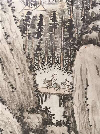 南宋赵芾的《江山万里图》长达9米多,以纯水墨取胜,将长江流至镇江一段波涛汹涌的水势详尽展现。然而,真正体现北宋山水突出成就的是以李成、范宽和郭熙三家为首的写实山水画风。展柜中特地展出了不易多见的燕文贵创作的《江山楼观图》,这件保存在日本大阪市立美术馆的纸本水墨山水融合了华北和江南两种地域特点,平远的主体构图中兼有高远与深远的表现。