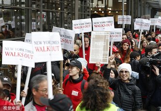 当地时间2022年12月8日,美国纽约,《纽约时报》员工举行为期一天的罢工。人民视觉 图