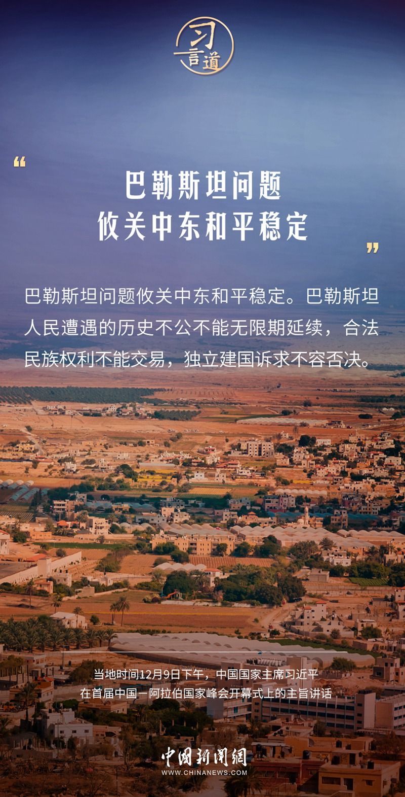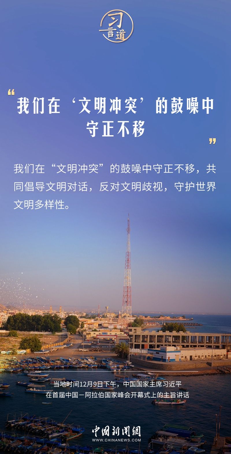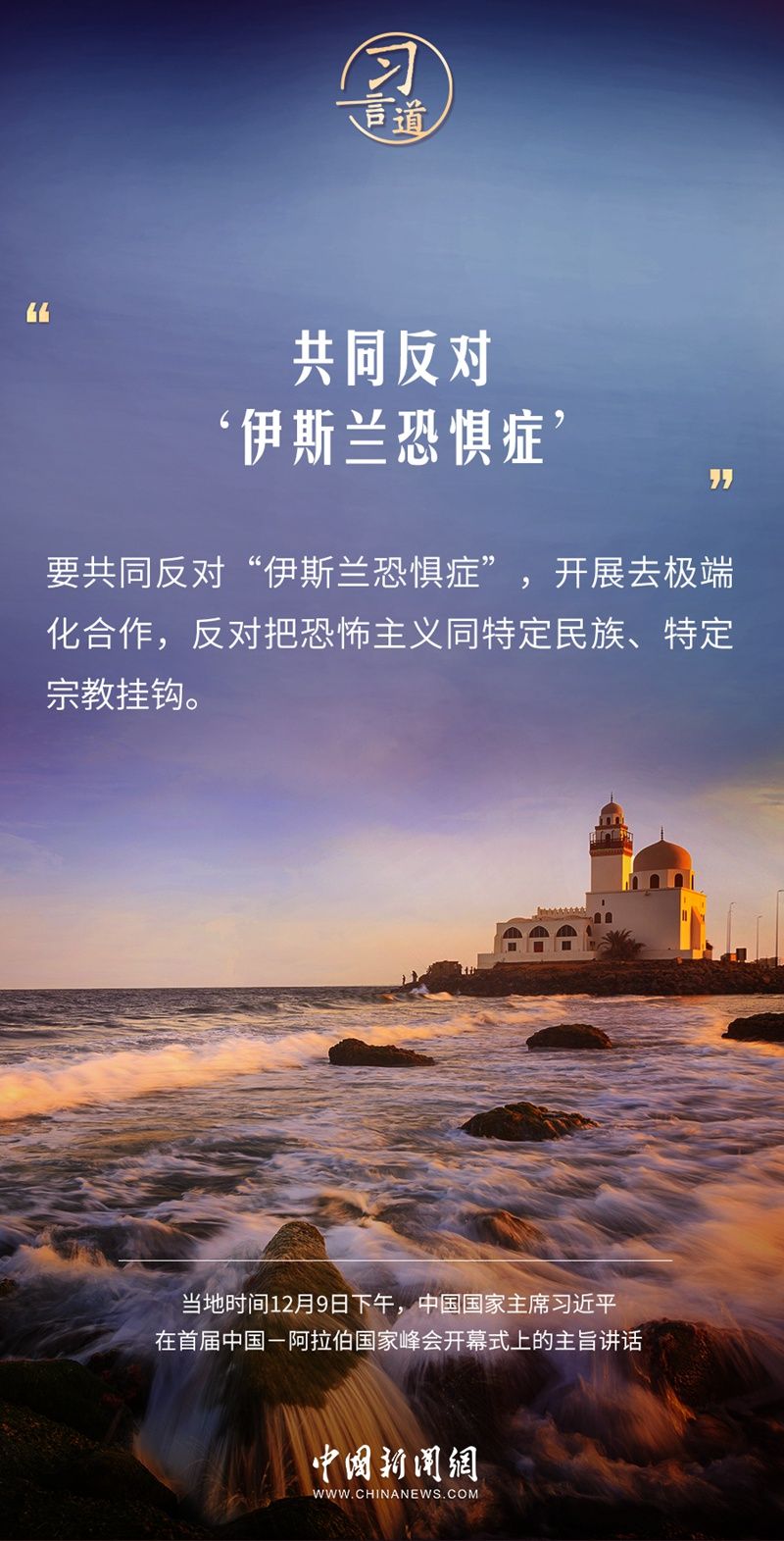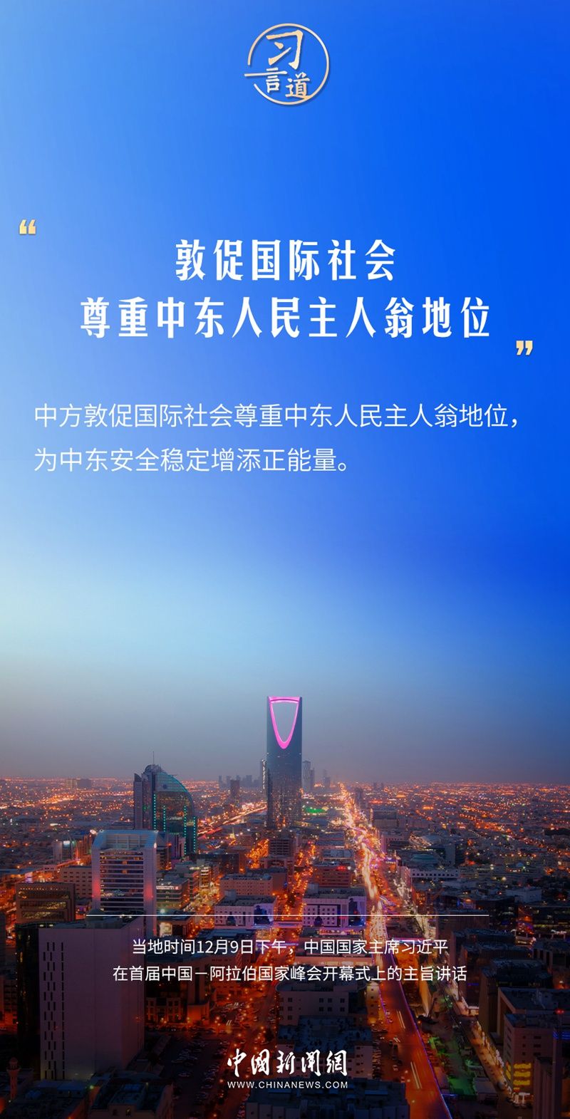 当地时间12月9日下午,首届中国—阿拉伯国家峰会在沙特首都利雅得阿卜杜勒阿齐兹国王国际会议中心举行。中国国家主席习近平在主旨讲话中指出——