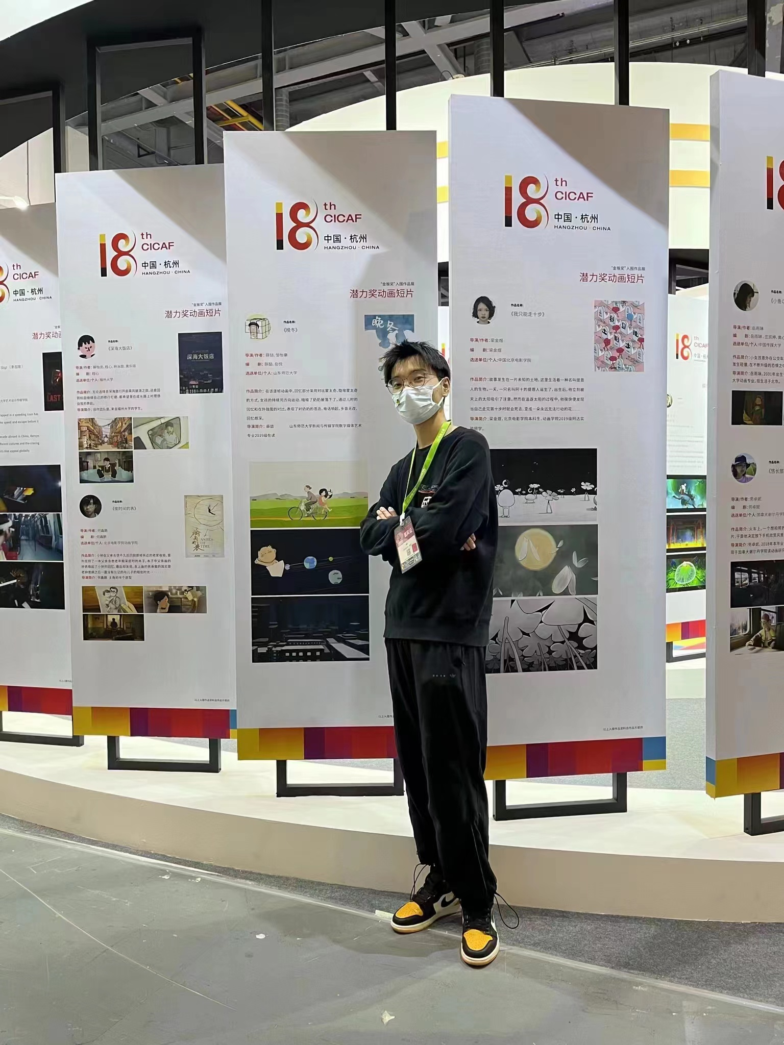 整部动画的制作与完善,既需要三人齐心协力,也离不开老师与朋友们的暖心支持。“尤其要感谢我们的指导老师杨田恒,从初版到终版,老师总是耐心地帮我们修改作品,在技术方面,他也会一步步地向我们示范如何制作,即使在提交作品的最后一个晚上,老师还为我们提出了不少宝贵的修改意见。”学院的其他老师也同样给予了三人支持与鼓励,在外出参赛的过程中一再嘱咐在外的安全与个人防护,成为他们顺利参加国际动漫节的坚强后盾。创作过程中,很多同学也为他们提供了建议和帮助,例如,为人物动作的设计提供参考,提供动画支持等。在岳悦、薛喆和邹怡豪看来,动画制作的过程绝不是三人的单打独斗,而是充满了许多人的暖意与关怀。