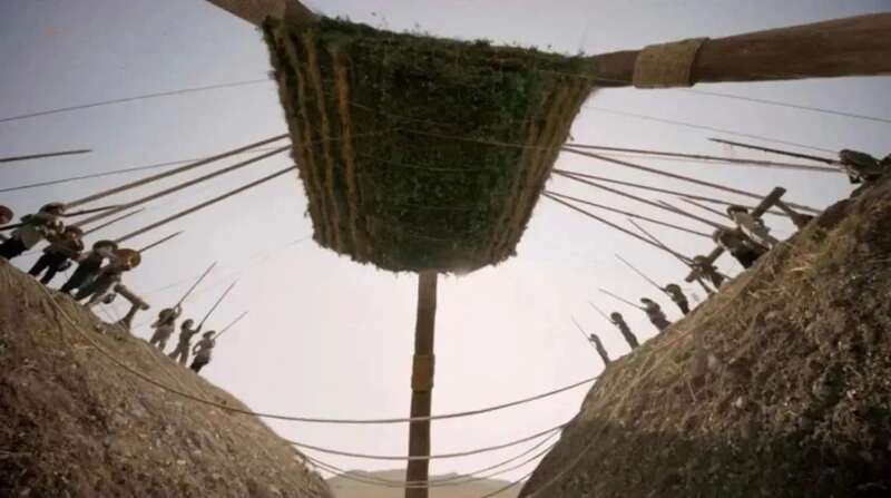 在导演张挺的多次媒体采访中,他也自述了剧组的美术制作流程,先参考清代河工工具的历史文献,美术组把工具复刻出来,自己先学会用,再来教会演员。比如梅花桩、大埽工,“单纯是打夯这一工艺,就针对不同形式进行了还原,有几个人抱着木柱打的,有往空中甩着打的,还有六七个人沿着绳子打的,这些工艺虽然实际上已经不复存在,但我们依然按照清朝的图式进行了复刻,力求从细微处展现真实、演绎历史。”