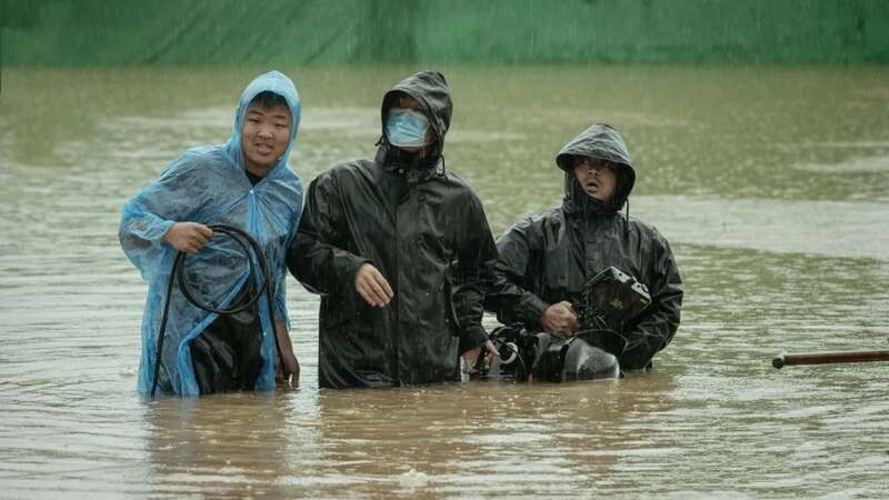 大浪打向人群,据姚昱竹介绍,这种戏很难用特效制作,“无论是从剧情真实度还是制作经费上来考量,巨浪滔天的水是做不了特效的,它无法展现出水患来临前河工们的真实面孔,也就无法让观众被真情实感地牵动。”能怎么办呢?只能一遍遍地泼,一条条地拍。人工造浪就用两辆摩托艇,在水面转弯时掀起浪花,模拟水浪。巨浪打向人群,就用大型挖掘机“舀水”,模拟洪水滔天的巨浪,往演员们身上泼。