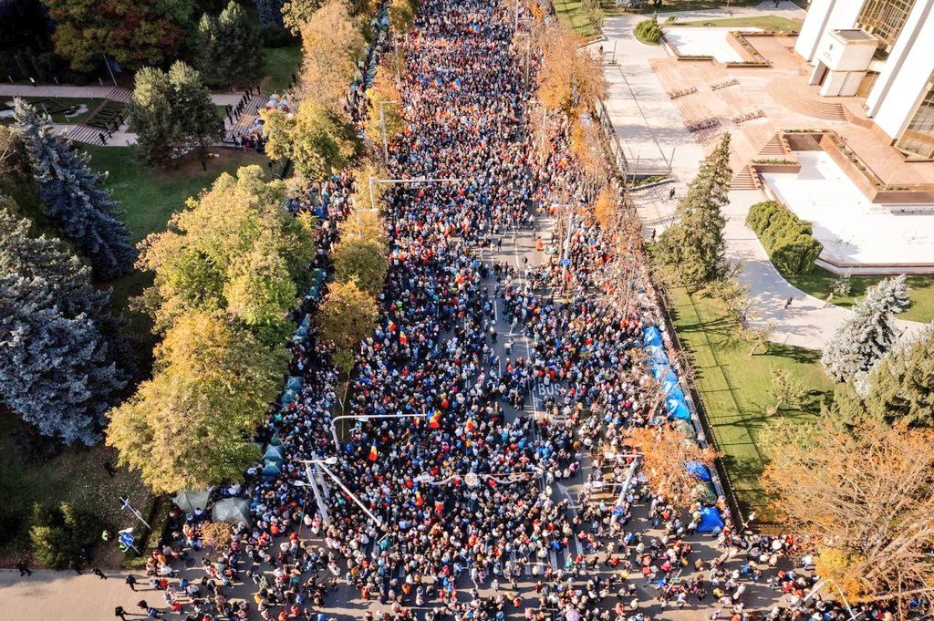 10月9日,摩尔多瓦首都基希讷乌爆发大规模抗议集会 社交媒体截图
