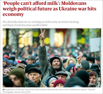 大规模停电、乱入的导弹以及高达35%的通货膨胀率……英国《卫报》12月12日报道称,俄乌冲突造成的附带损害已使得乌克兰邻国——人口仅350万的摩尔多瓦,陷入到一场严重危机之中,不少人连基本的食物和药品也买不起。摩尔多瓦反对派将危机归咎于政府的反俄政策,近来频繁发起反政府、亲俄罗斯的游行。