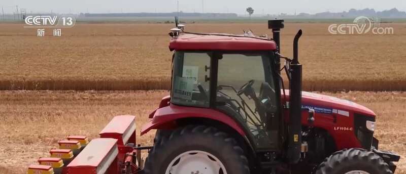 除了拥有强大数据处理能力的智慧控制系统,越来越“聪明”的北斗导航系统也来助力。在江苏盐城的这个家庭农场,装有北斗导航系统的小麦条播机正按照北斗规划好的播种路线匀速前进,施肥、播种、覆土等作业一气呵成,作业误差在2厘米以内。十年来,我国带有北斗定位功能的智能化农机从不到1万台增长到今年超过90万台。