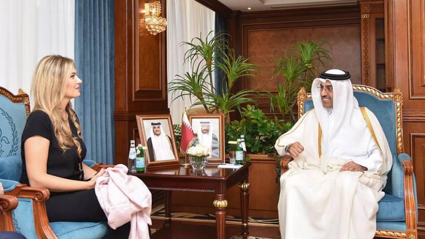 2022年10月31日,卡莉(左)与卡塔尔劳工部长交谈。