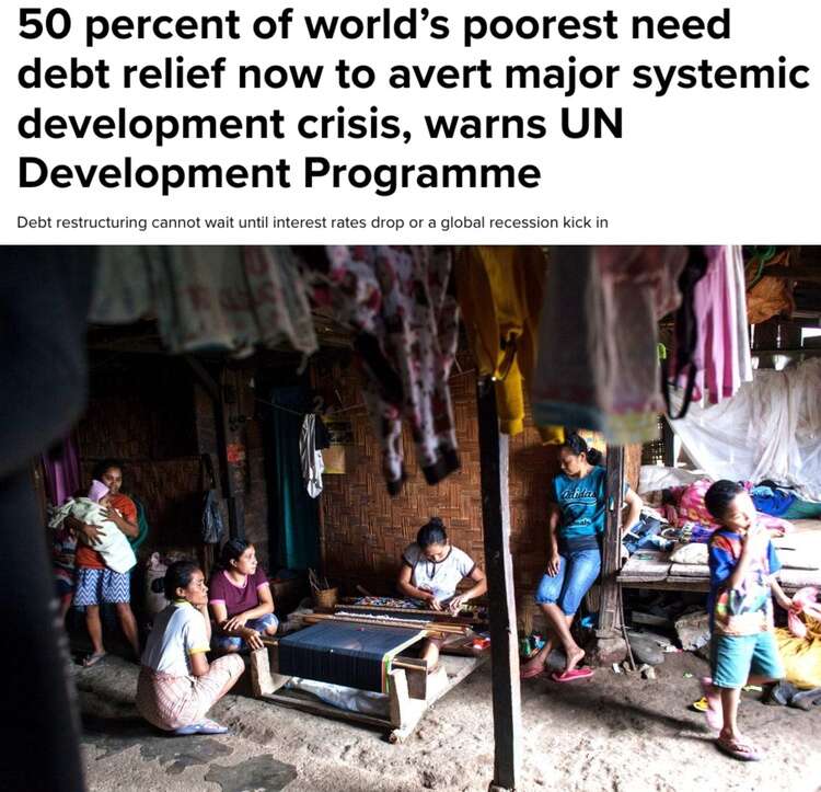 联合国开发计划署10月警告,严重的债务危机正在世界最贫困地区蔓延,占世界最贫困人口一半以上的54个国家需要立即减免债务,这些国家主要是撒哈拉以南非洲国家。