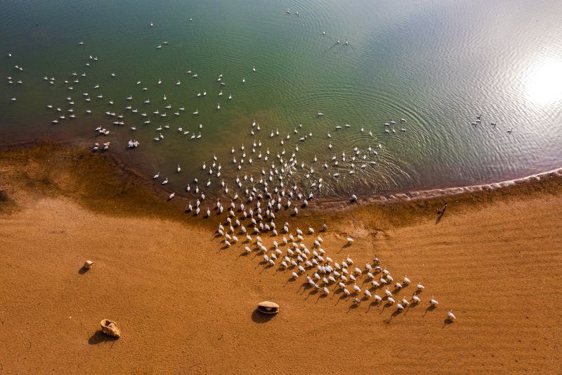 2022年12月15日,山西运城,在芮城县圣天湖景区,成群野生大天鹅在湖面嬉戏,它们时而引吭高歌,时而追逐打闹,或展翅高飞,给冬日的黄河岸畔增添了无限活力。