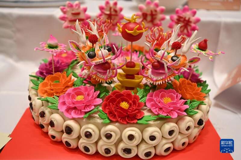 这是12月16日拍摄的2022中国非遗面食大会现场展示的花馍。