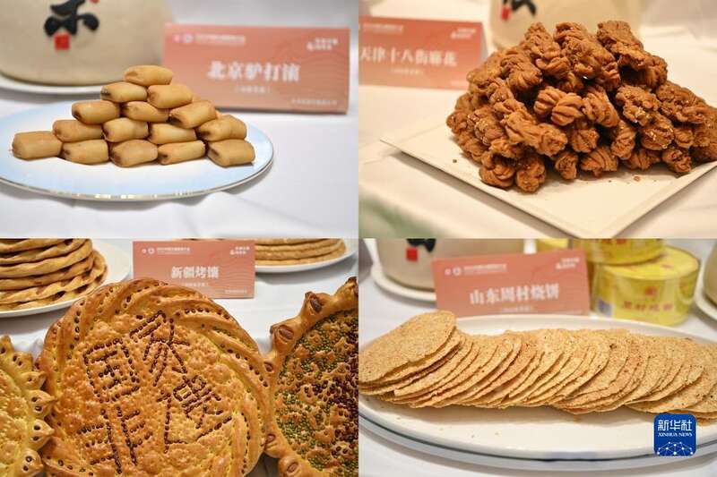 这是2022中国非遗面食大会现场展示的各地特色面食(拼版照片,12月16日摄)。